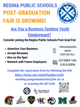 APRIL 20, 2026—If you are a business seeking youth employment, please consider joining the Regina Public Schools Post-Graduation Fair.
