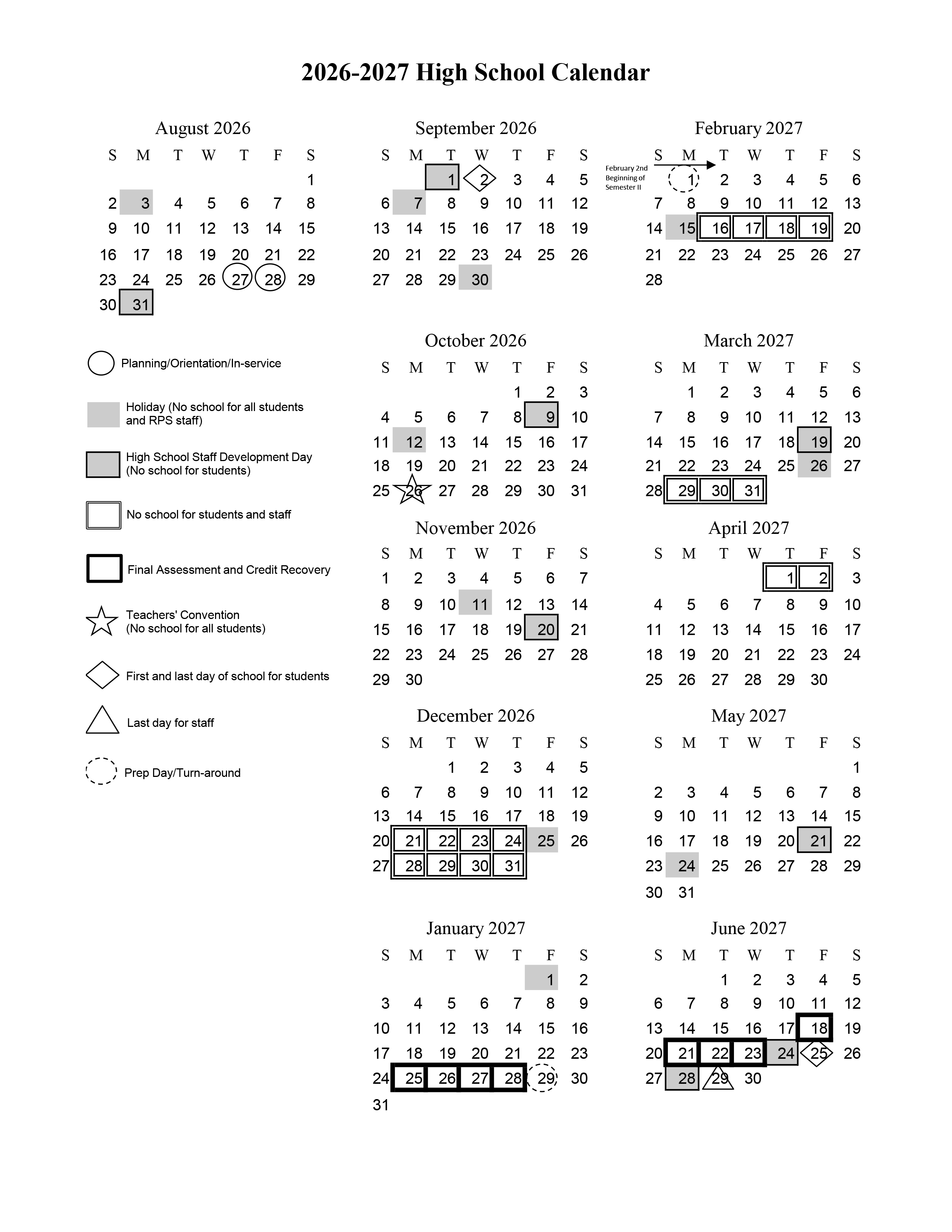 High School Calendar 2026-27