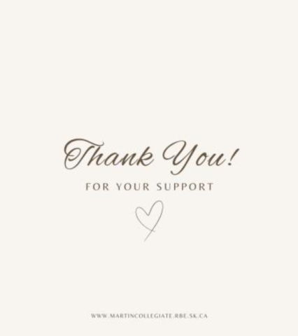 MARCH 6, 2026—Martin Collegiate extends a heartfelt THANK YOU to Access Communications Children's Fund, Community Initiatives Fund, Crawford's NO FRILLS and Farm Credit Canada, who all generously contributed monetary donations to support snacks and lunch for Martin students!