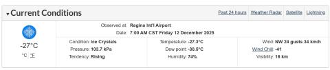 December 12, 2025 -- Transportation with specialized equipment for wheelchairs has been cancelled due to windchill of -41C. All other student transportation is operating today. Please bundle up and call school with any absences.