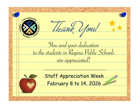 FEBRUARY 3, 2026—The Ministry of Education has officially declared February 8 to 14, 2026, as Staff Appreciation Week in Saskatchewan. This year's theme is "Building Relationships for a Positive School Culture." This theme emphasizes the importance of teachers, support staff, administrators, parents/caregivers, and families working together with community members and partners to provide the best school culture possible.